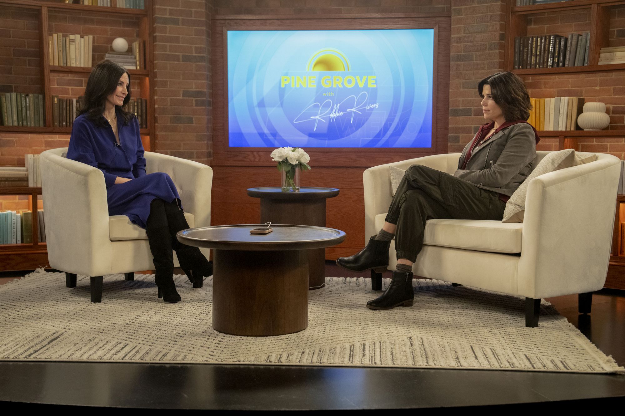 Passend dazu eröffnet Scream 7 mit einem Abstecher nach Woodsboro in das Haus, in dem alles begann. Der ehemalige Wohnort von Stu Macher wird inzwischen im Rahmen einer Erlebnistour als Airbnb vermietet. Ghostface-Attrappen, Kunstblut und unheimliche Anrufe versprechen ein authentisches Stab-Erlebnis. Zwar verweilt der Film dort nicht lange, liefert dadurch aber einen Bezugspunkt für Neueinsteiger und einen Moment der Erinnerung für etablierte Fans. Zeitgleich ist das Leben von Sidney Prescott-Evans zum ersten Mal seit Jahren verdächtig ruhig. Verschont von der Mordserie in New York ist ihr größtes Problem, einen Zugang zu ihrer jugendlichen Tochter zu finden. Genervt vom Beschützerinstinkt ihrer Mutter versucht Tatum, Schule, Theater, Freund und Freundeskreis unter einen Hut zu bringen, ohne ständige Bevormundung.