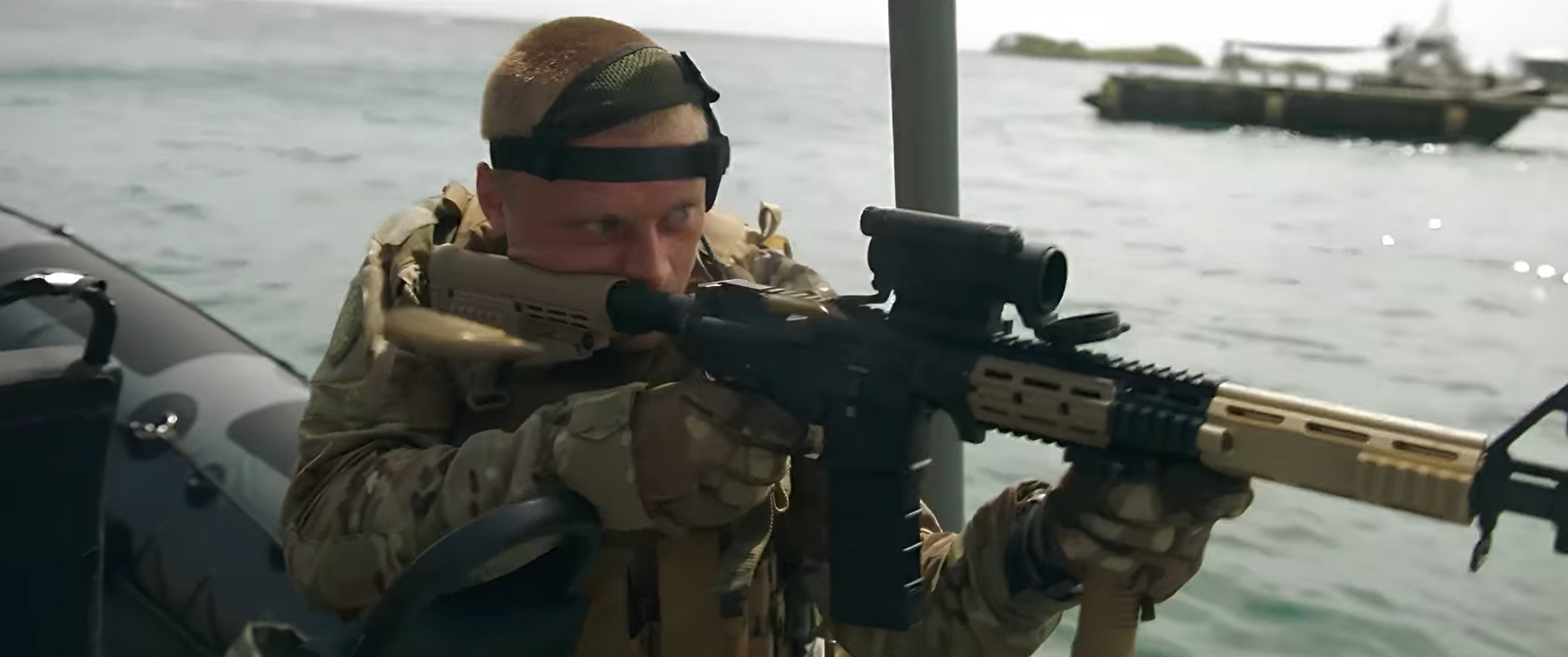 An Kriegsfilmen mangelt es eigentlich nicht. Besonders populär ist dabei nach wie vor der Zweite Weltkrieg, der gefühlt jede Woche einen neuen Film erhält – mehr als 80 Jahre nach Kriegsende. Und auch sonst sind es besonders historische Szenarien, die verarbeitet werden. Geschichten, die in der Gegenwart spielen, sind hingegen eher selten. Das liegt nicht nur daran, dass diese Kriege eben noch nicht vorbei sind. Auch politisch ist das zuweilen heikel, da das oft bedeutet, Position beziehen zu müssen. Zumindest, wenn man eindeutige Böse braucht. Beim Kampf gegen Terroristen geht das, bei Konflikten zwischen Ländern eher weniger. Invasion – Zwischen Paradies und Inferno machte es sich daher einfach und erfand den Feind einfach. Zwar ist es naheliegend, dass der Film von Venezuela spricht, wenn ein südamerikanisches Land die Insel überfällt. Offiziell ist es aber die erfundene Nation Veragua, die hier zum Angreifer wird.
