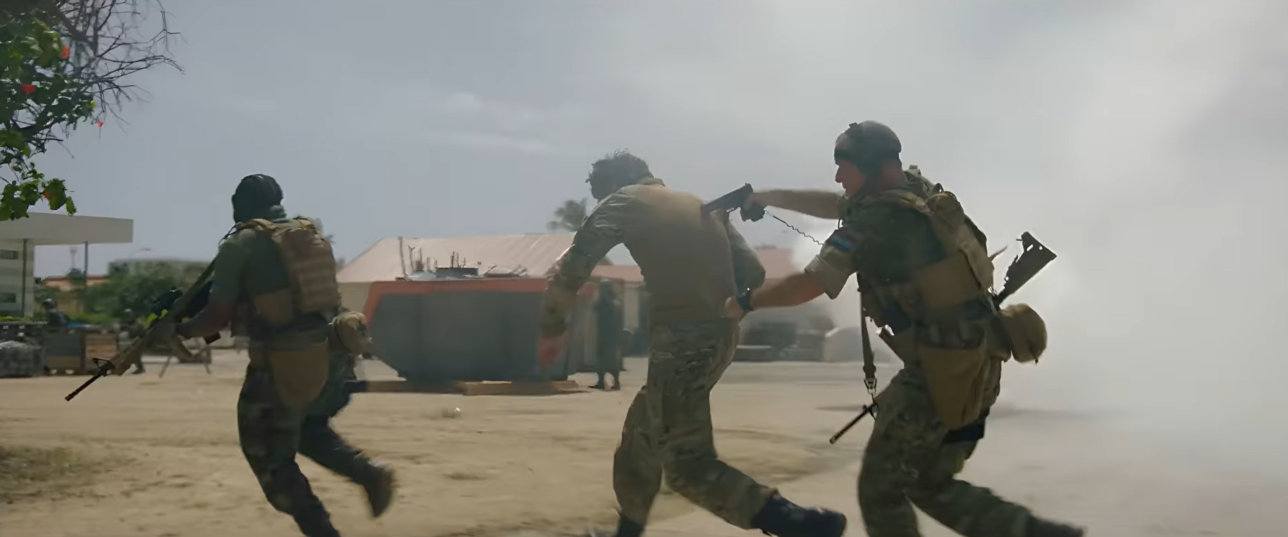 Wobei sich der Film ohnehin nicht für die politische Dimension interessiert. Wichtiger ist hier die Action, wenn ständig etwas los ist. Invasion – Zwischen Paradies und Inferno startet zu diesem Zweck gleich eine ganze Reihe von Strängen, zwischen denen hin und her gesprungen wird. Zwar ist Andy so etwas wie die Hauptfigur des Geschehens. Regelmäßig geht es aber auch um andere Figuren und andere Schauplätze, etwa seinen Bruder Judsel (Jasha Rudge), der bei der Küstenwache arbeitet. Oder eben der Diplomat, der gerettet werden muss. Das Ergebnis ist gemischt. Auf der einen Seite wird auf diese Weise schon ganz gut das Chaos veranschaulicht, wenn überall etwas los ist und alle mit der Situation überfordert sind. Es gibt dann eben doch nicht nur einen Kriegsschauplatz.