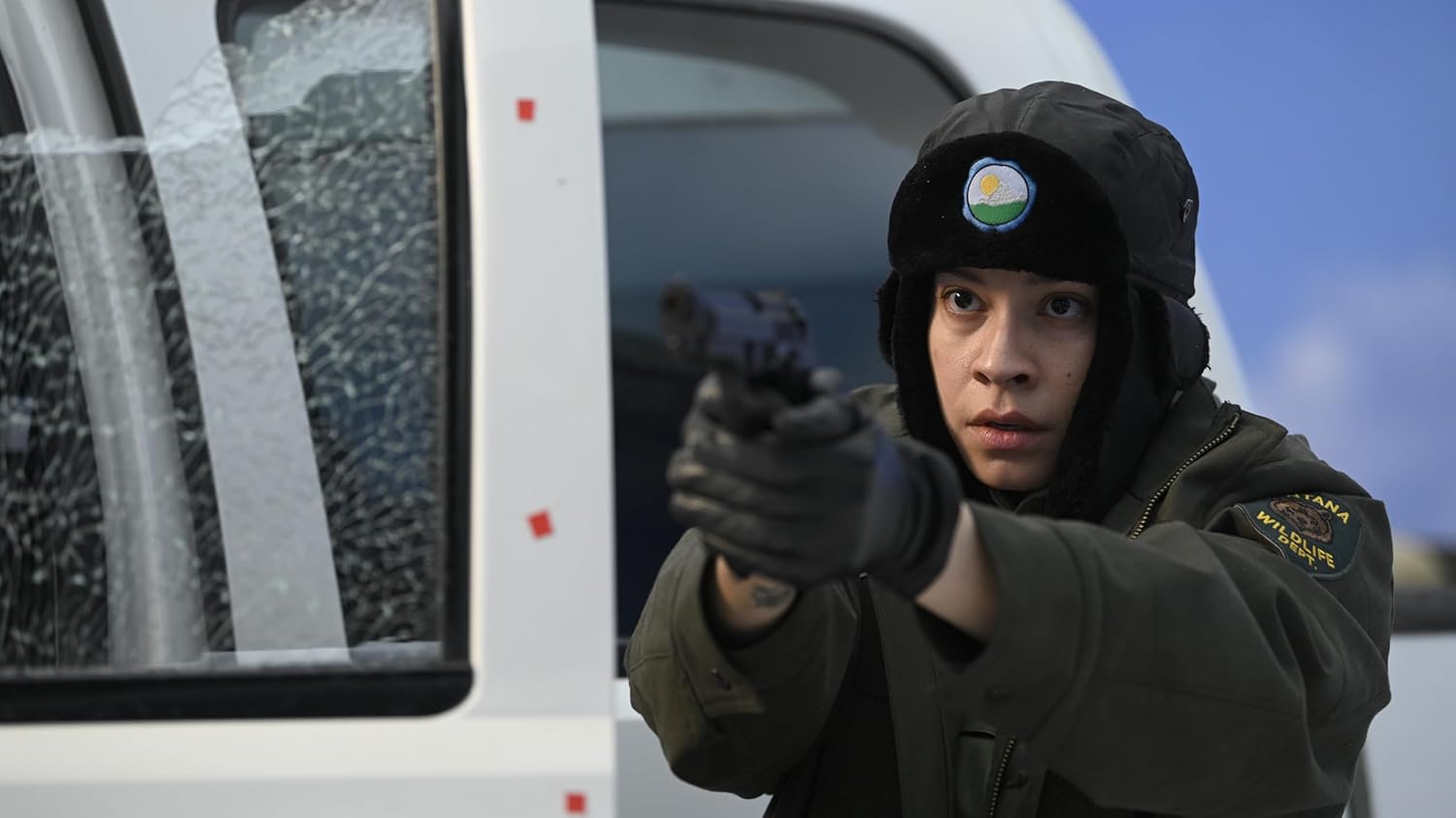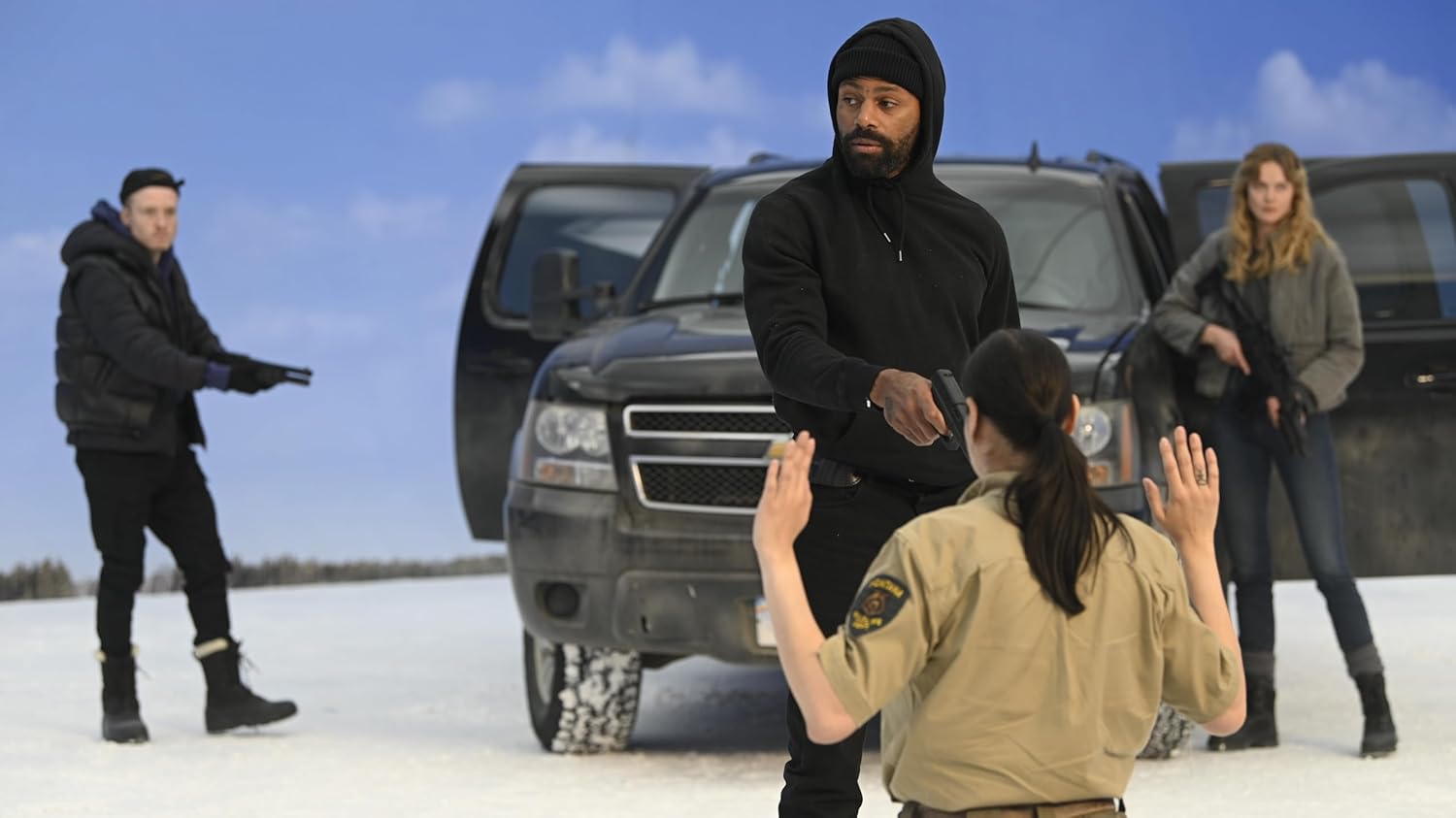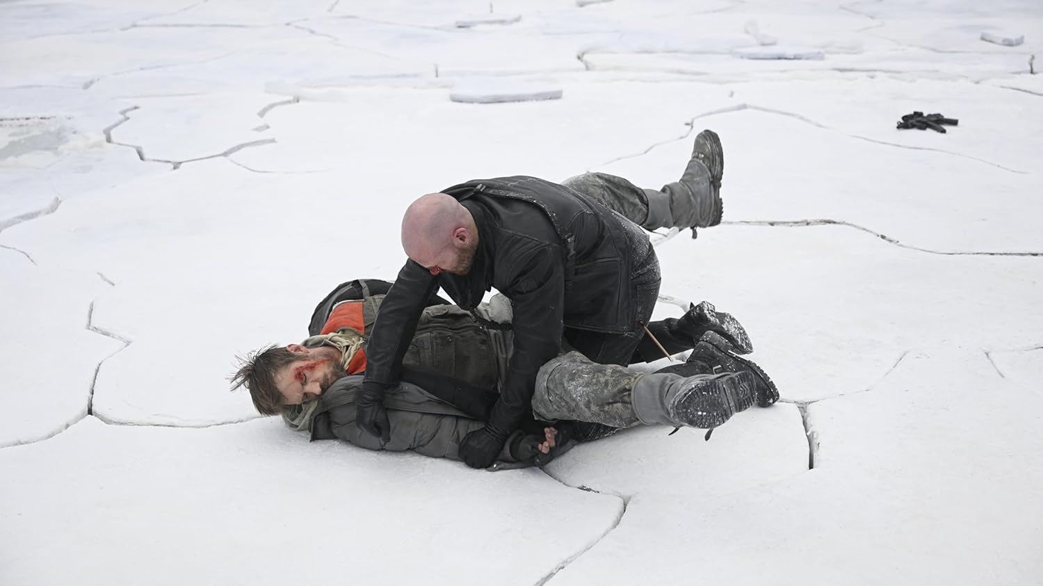 Tatsächlich ist die Hauptgeschichte so banal und bekannt, dass es sich kaum lohnt, sie noch irgendwie zu erwähnen. Jemand findet das Geld von Verbrechern und wird anschließend von diesen verfolgt, muss ihnen entkommen, manchmal auch gegen sie kämpfen. Die US-amerikanische Produktion weicht da nie von den Genrekonventionen ab. Auch dass die Polizei irgendwann dazukommt, ist ein so naheliegender Einfall, dass die meisten ihn haben. Gut, hier ist es eine Wildhüterin. Aber das macht keinen wesentlichen Unterschied. Es ist auch nicht so, als würde Icefall – Bis das Eis bricht! sehr viel in die Figurenzeichnung hinter der Uniform investieren. Eine tragische Vorgeschichte beim Protagonisten? Das ist mittlerweile Standard, weil es eine billige Möglichkeit ist, einen Charakter vorzutäuschen, wo keiner ist. Wozu Arbeit in das Drehbuch investieren, wenn es auch ein Klischee tut?